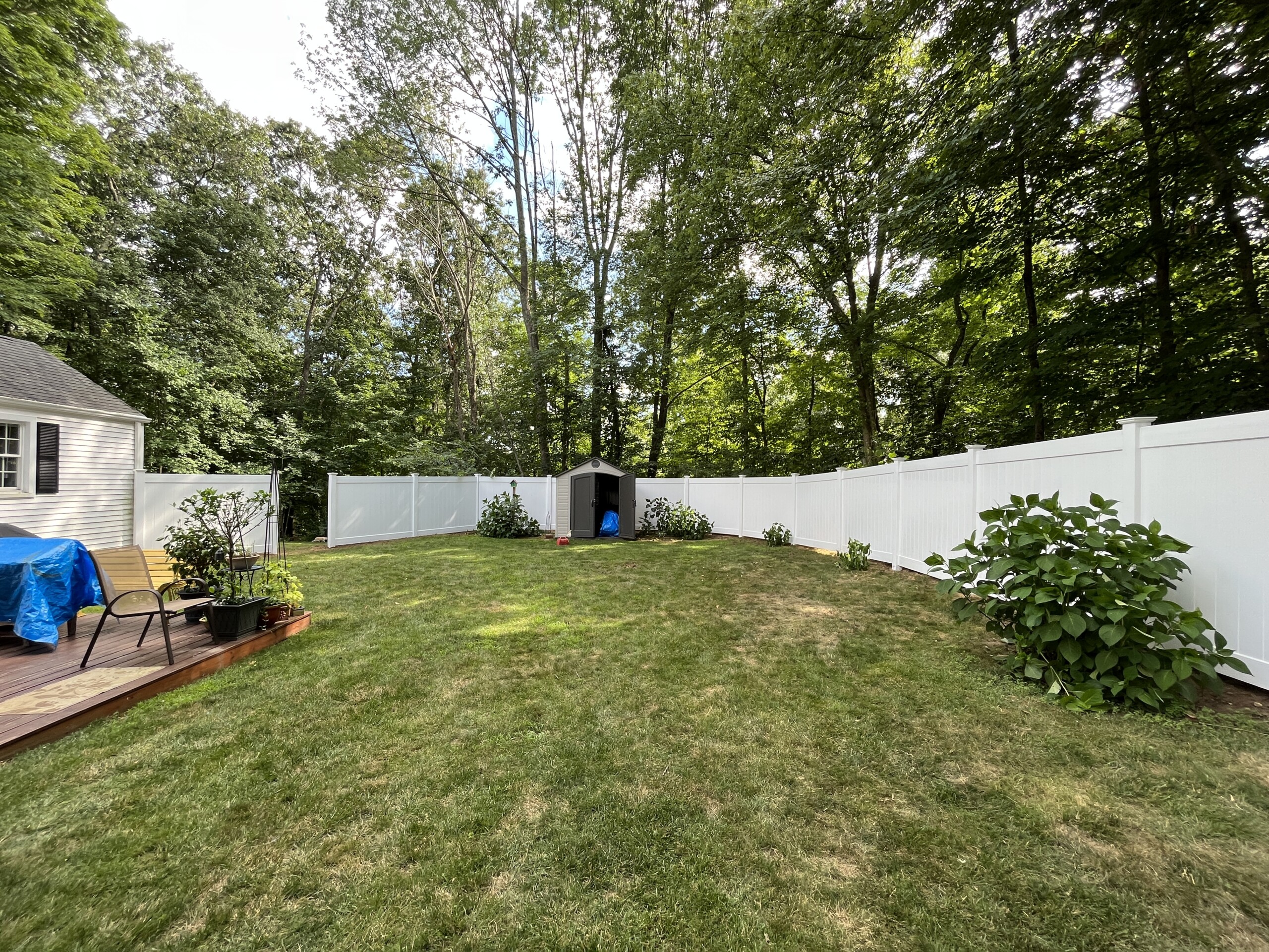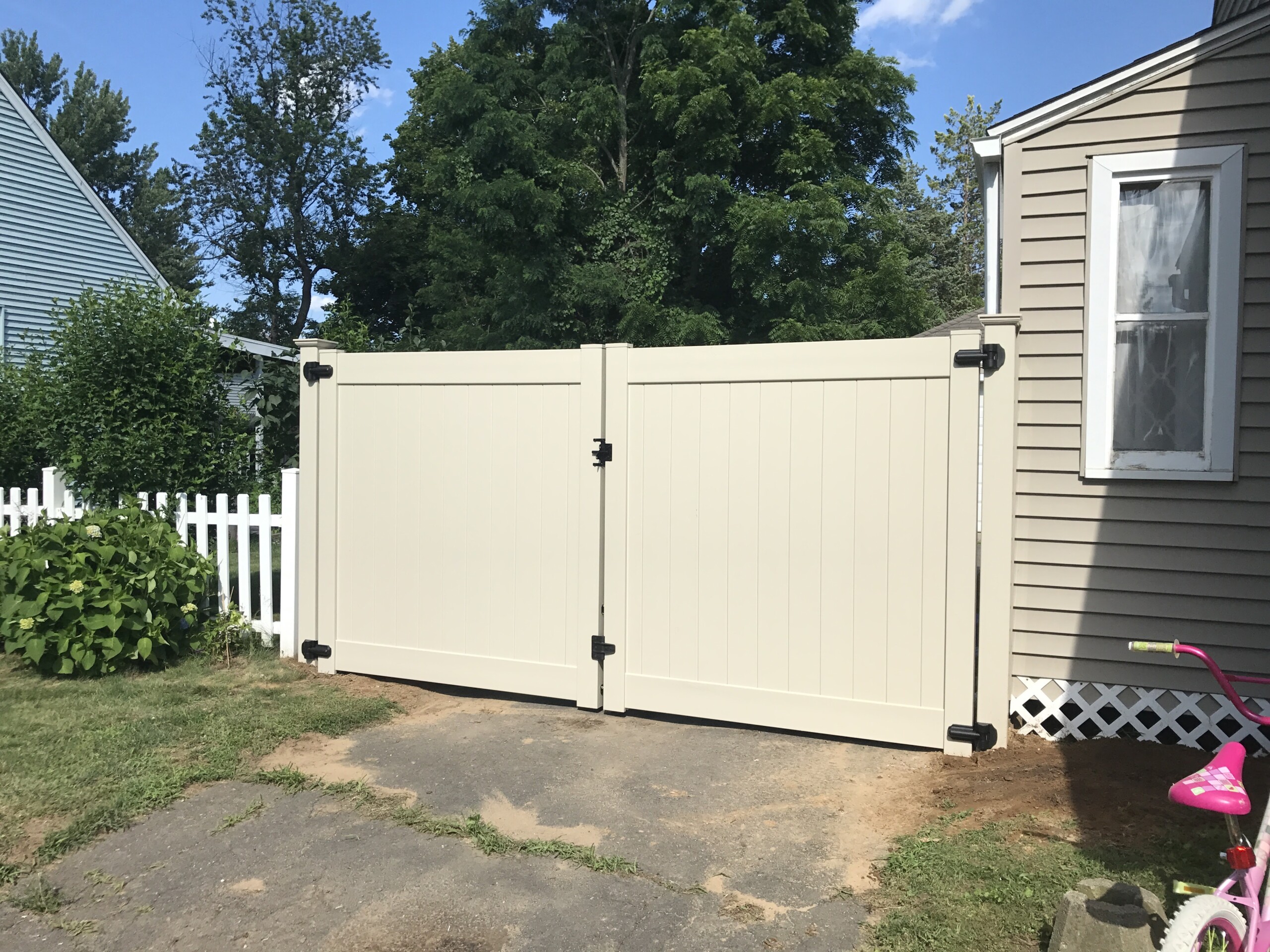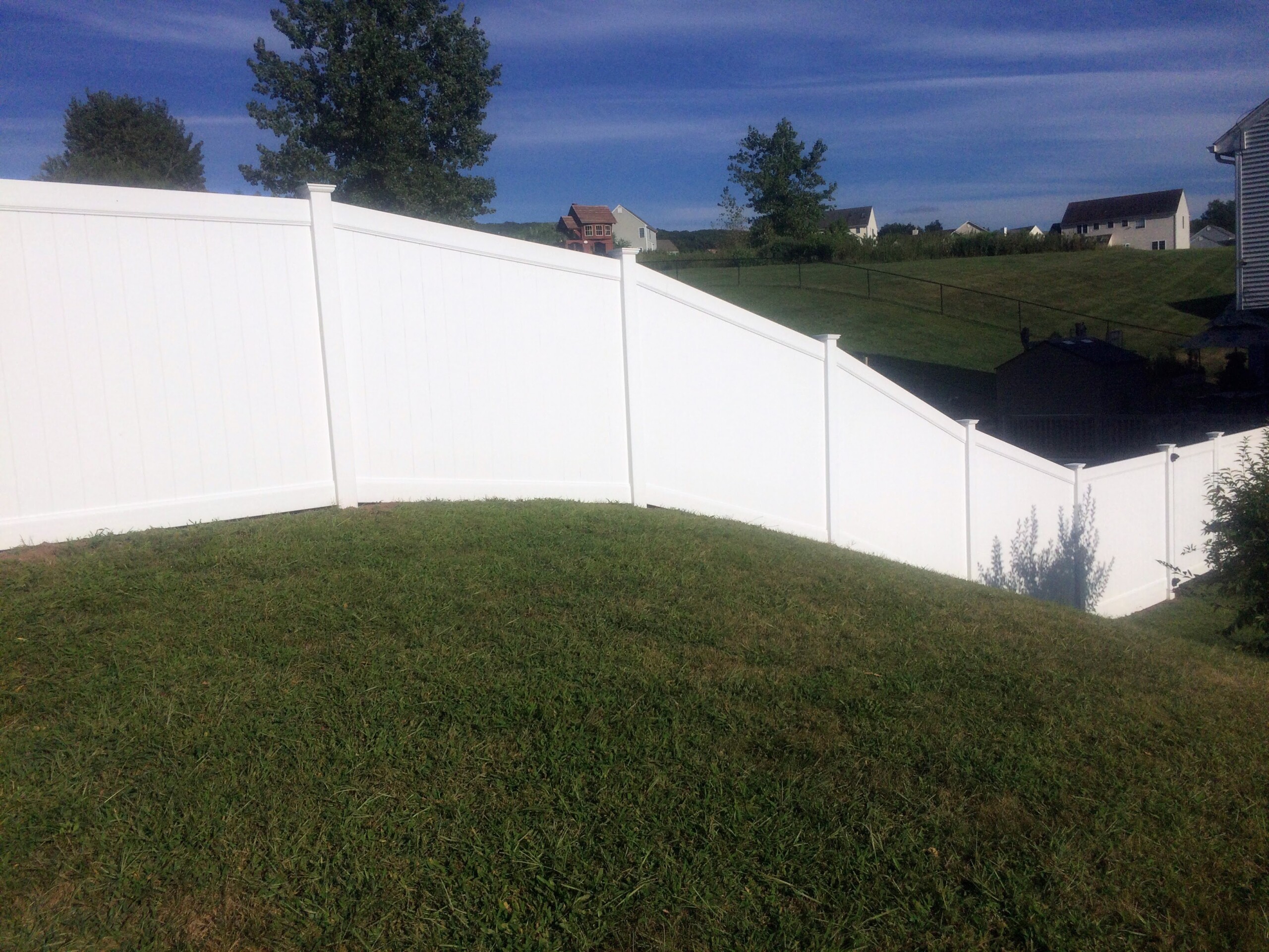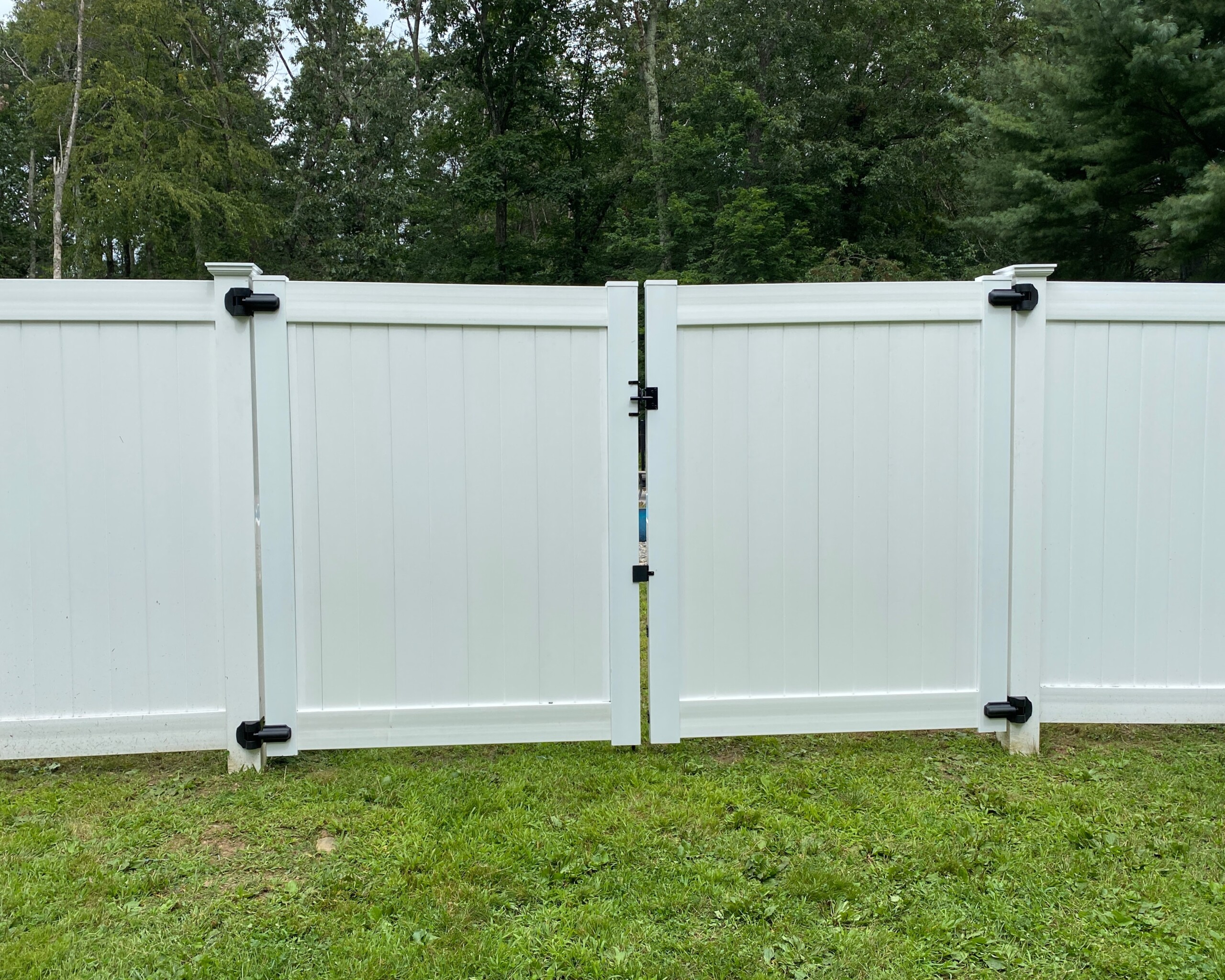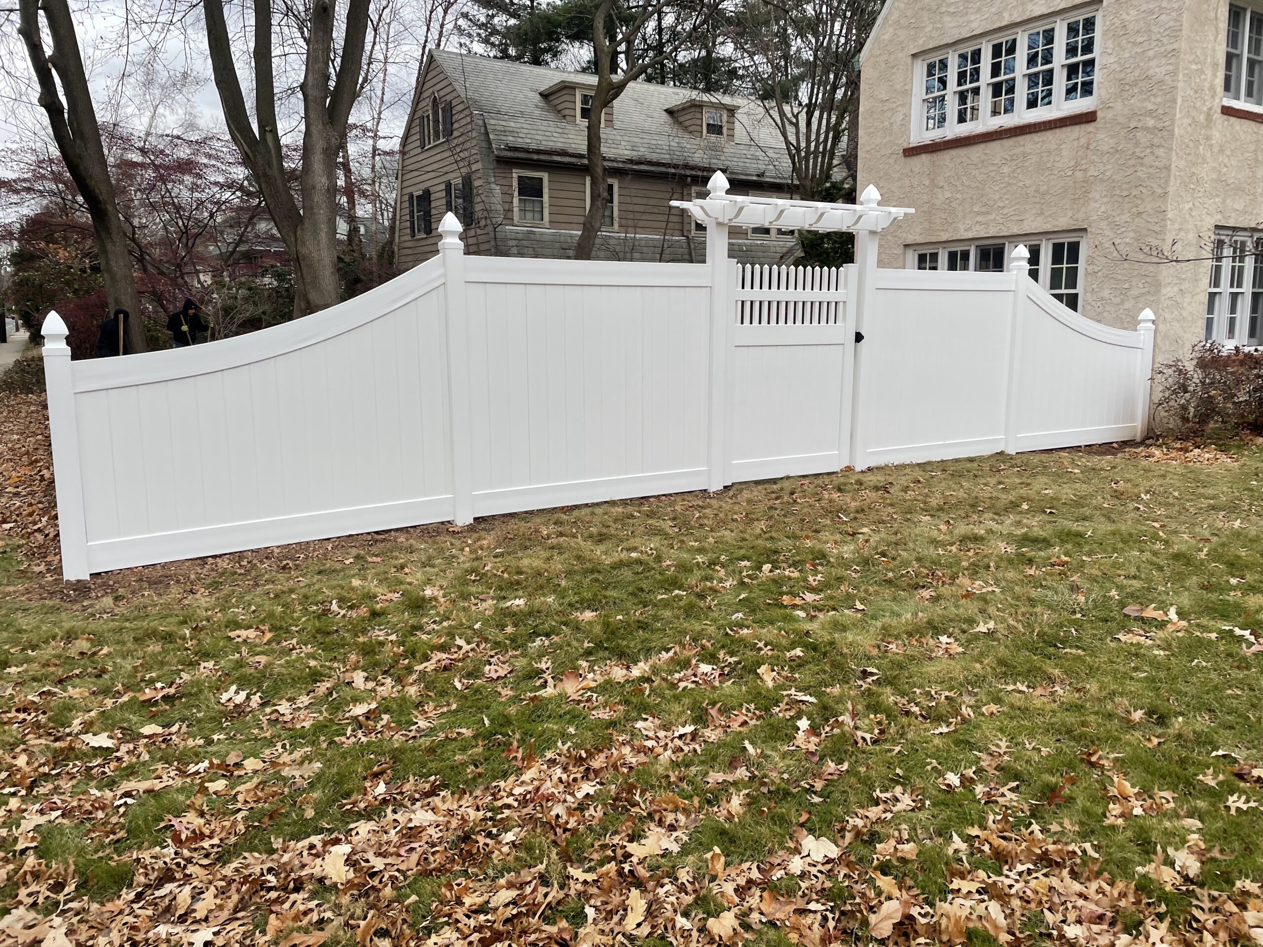 At Fence One we take our materials seriously. Not all vinyl fences are manufactured the same and not all fence companies install them the same. You have probably seen countless examples of white vinyl fences many sold by the ‘big box home stores’ that quite simply look awful. This is NOT what we sell or install. Our vinyl fences are all manufactured in the USA and are designed with a system where both the top and bottom rails go into each post. This is much like a ‘post and beam’ house. Our posts are a full 5″x5″ with a minimum of 36″ to 42″ of the post in the ground. We mix concrete on site whereby every post is secured in concrete to ensure your fence will not move over the years due to frost or wind. That means when we install your fence it will retain its even flow and lines for years to come.Most yards in Connecticut are not perfectly level. We install your fence to accommodate the natural flow of your property by custom cutting rails and pickets to follow the grade of your yard. This means we DO NOT step your fence like a staircase, but maintain an even flow that creates a dramatic and professional appearance that is pleasing to the eye. This type of installation means we avoid installing a fence with large gaps or spaces under the fence which is especially important with children and pets.